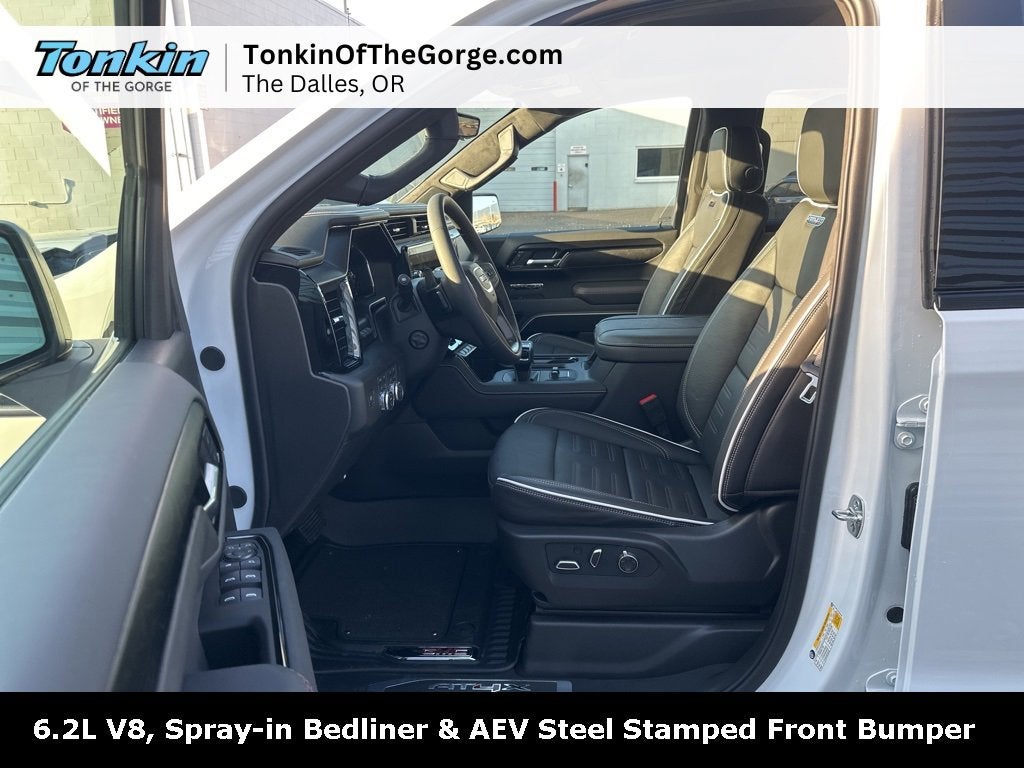 2026 GMC Sierra 1500 AT4X 10-Speed Automatic, 4WD, Obsidian Rush Leather, 120-Volt Bed Mounted Power Outlet, 120-Volt Interior Power Outlet, 2 Charge/Data USB Ports Inside Center Console, 2 Type-C Charge-Only Rear USB Ports, 2 USB Ports, 3.23 Rear Axle Ratio, 4-Wheel Disc Brakes, ABS brakes, Apple CarPlay/Android Auto, Auto-dimming door mirrors, Auto-dimming Rear-View mirror, Auxiliary External Transmission Oil Cooler, Bed View Camera, Block heater, Bose Premium Series w/12-Speaker System, Brake assist, Buckle to Drive, Color-Keyed Carpeting Floor Covering, Compass, Deep-Tinted Glass, Delay-off headlights, Driver vanity mirror, Driver-Selectable Full-Locking Front Differential, Driver-Selectable Full-Locking Rear Differential, Dual Active Exhaust, Dual front side impact airbags, Electric Rear-Window Defogger, Electronic Stability Control, Floor-Mounted Center Console, Forward Collision Alert, Front anti-roll bar, Front Center Armrest, Front fog lights, Front License Plate Kit, Front Prem Floor Liners w/Removable Carpet Insert, Front Rain-Sensing Wipers, Full Grain Leather Seat Trim, Fully automatic headlights, Garage door transmitter, Genuine wood dashboard insert, Gloss Black Header w/Drk Nickel Grille Insert Bars, HD Surround Vision, Heads-Up Display, Heated 2nd Row Outboard Seats, Heated door mirrors, Heated Driver & Front Outboard Passenger Seating, Heated rear seats, Heavy-Duty Air Filter, Hill Descent Control, Hitch Guidance, Hitch View, Illuminated entry, In-Vehicle Trailering System App, Integrated Trailer Brake Controller, Keyless Open & Start, Leather steering wheel, LED Cargo Area Lighting, Low tire pressure warning, Memory seat, Multicolor 15 Diagonal Head-Up Display, MultiPro Tailgate Audio System by Kicker (LPO), Navigation System, OnStar Services Capable, Overhead airbag, Passenger vanity mirror, Perimeter Lighting, Power Door Locks, Power door mirrors, Power driver seat, Power Front Passenger Windows w/Express Up/Down, Power Front Windows w/Driver Express Up/Down, Power moonroof, Power Rake & Telescoping Steering Column, Power Rear Windows w/Express Down, Power Sliding Rear Window w/Rear Defogger, Power Sunroof, Preferred Equipment Group 4SG, Push Button Start, Rain sensing wipers, Rear Cross Traffic Braking, Rear Pedestrian Detection, Rear Prem Floor Liners w/Removable Carpet Insert, Rear seat center armrest, Rear Wheelhouse Liners, Remote Vehicle Starter System, SiriusXM w/360L Trial Subscription, Split folding rear seat, Spray-On Pickup Bedliner w/GMC Logo, Steering Wheel Audio Controls, Theft Deterrent System (Unauthorized Entry), Traction control, Trailer Camera Provisions, Trailer Side Blind Zone Alert, Trailer Tire Pressure Monitor System, Trailering Package, Ultrasonic Front & Rear Park Assist, Universal Home Remote, Variably intermittent wipers, Ventilated Driver & Front Passenger Seats, Wi-Fi Hotspot Capable, Wireless Charging. 14/16 City/Highway MPG