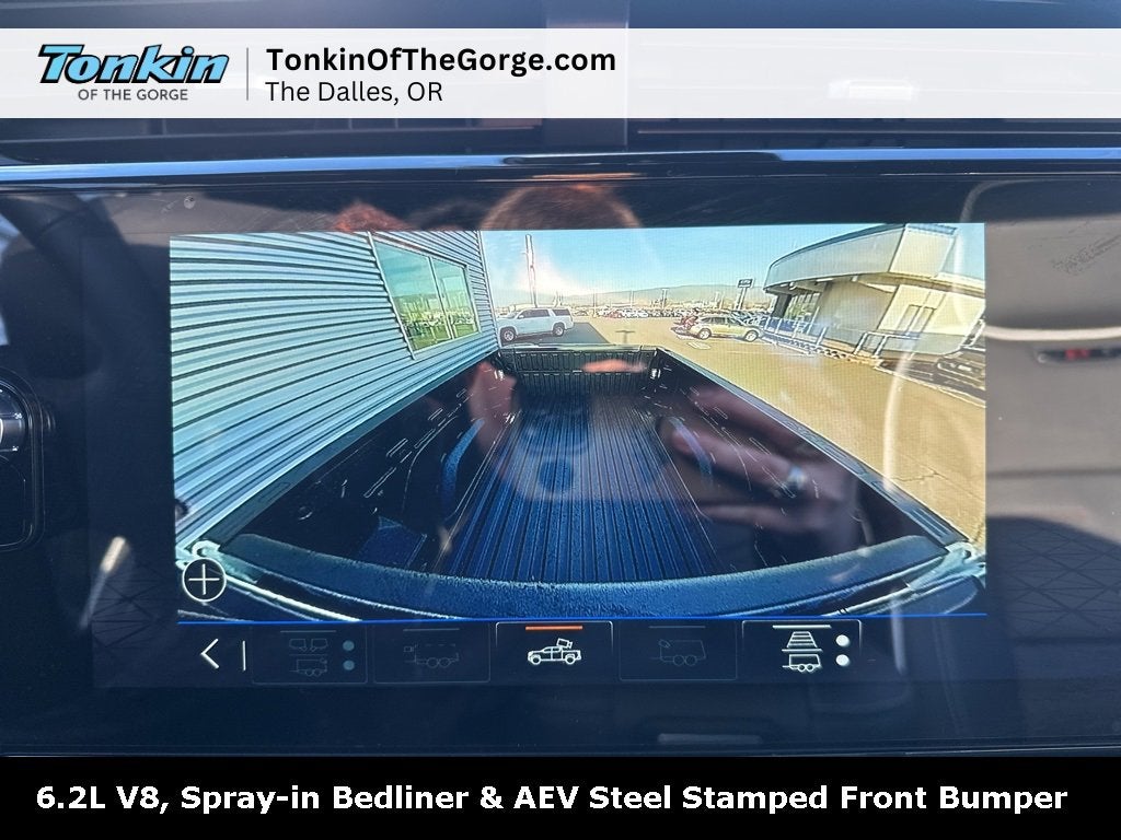 - Allows driver to see inside the cargo bed on the infotainment display to help with 5th wheel or gooseneck hitching and to check cargo