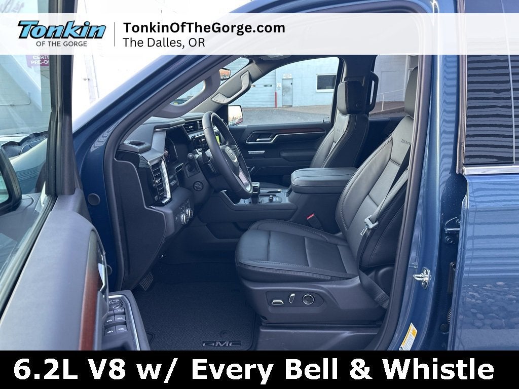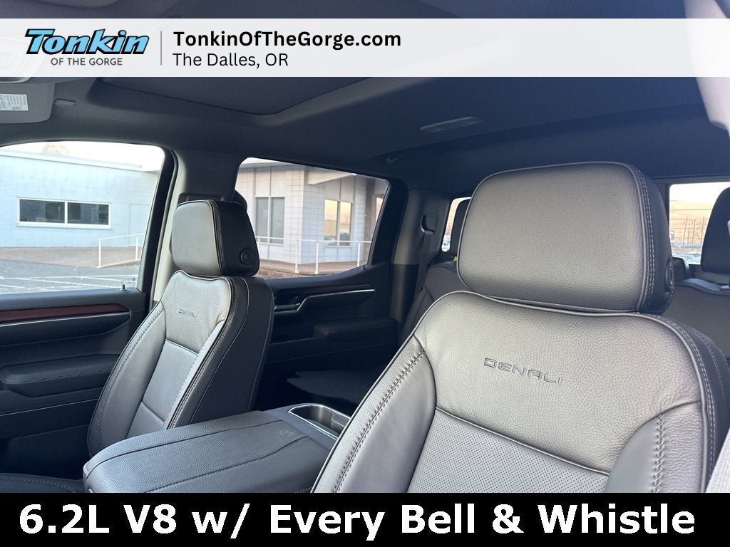 2026 GMC Sierra 1500 Denali 10-Speed Automatic, 4WD, Black Leather, 120-Volt Bed Mounted Power Outlet, 120-Volt Interior Power Outlet, 170 Amp Alternator, 2 Charge/Data USB Ports Inside Center Console, 2 Type-C Charge-Only Rear USB Ports, 2 USB Ports, 3.23 Rear Axle Ratio, 4-Wheel Disc Brakes, Alloy wheels, Apple CarPlay/Android Auto, Auto High-beam Headlights, Auto-dimming door mirrors, Auto-dimming Rear-View mirror, Auto-Locking Rear Differential, Auxiliary External Transmission Oil Cooler, Bed View Camera, Brake assist, Buckle to Drive, Bumpers: body-color, Chrome Recovery Hooks, Color-Keyed Carpeting Floor Covering, Deep-Tinted Glass, Driver door bin, Driver Memory, Driver vanity mirror, Dual Active Exhaust, Dual front impact airbags, Dual front side impact airbags, Electric Rear-Window Defogger, Emergency communication system: OnStar, Floor-Mounted Center Console, Following Distance Indicator, Forge Perforated Leather Seat Trim, Front anti-roll bar, Front Bucket Seats, Front License Plate Kit, Front Pedestrian Braking, Front Rain-Sensing Wipers, Front reading lights, Fully automatic headlights, Garage door transmitter, Genuine wood dashboard insert, GMC MultiPro Power Steps, HD Surround Vision, Heated 2nd Row Outboard Seats, Heated door mirrors, Heated front seats, Heated rear seats, Heavy-Duty Air Filter, Hill Descent Control, Hitch Guidance, Hitch View, Integrated Trailer Brake Controller, LED Cargo Area Lighting, Navigation System, Occupant sensing airbag, OnStar Services Capable, Outside temperature display, Overhead airbag, Panic alarm, Passenger vanity mirror, Perimeter Lighting, Power Door Locks, Power door mirrors, Power driver seat, Power windows, Preferred Equipment Group 5SA, Premium Bose 7-Speaker Sound System, Push Button Start, Rear Camera Mirror, Rear Cross Traffic Braking, Rear Pedestrian Detection, Rear step bumper, Rear Wheelhouse Liners, Remote Vehicle Starter System, Safety Alert Seat, Security system, Speed-sensing steering, Split folding rear seat, Steering Wheel Audio Controls, Super Cruise, Tachometer, Telescoping steering wheel, Traction control, Trailer Camera Provisions, Trailer Side Blind Zone Alert, Trailering Package, Universal Home Remote, Variably intermittent wipers, Wi-Fi Hotspot Capable, Wireless Charging. 15/19 City/Highway MPG
