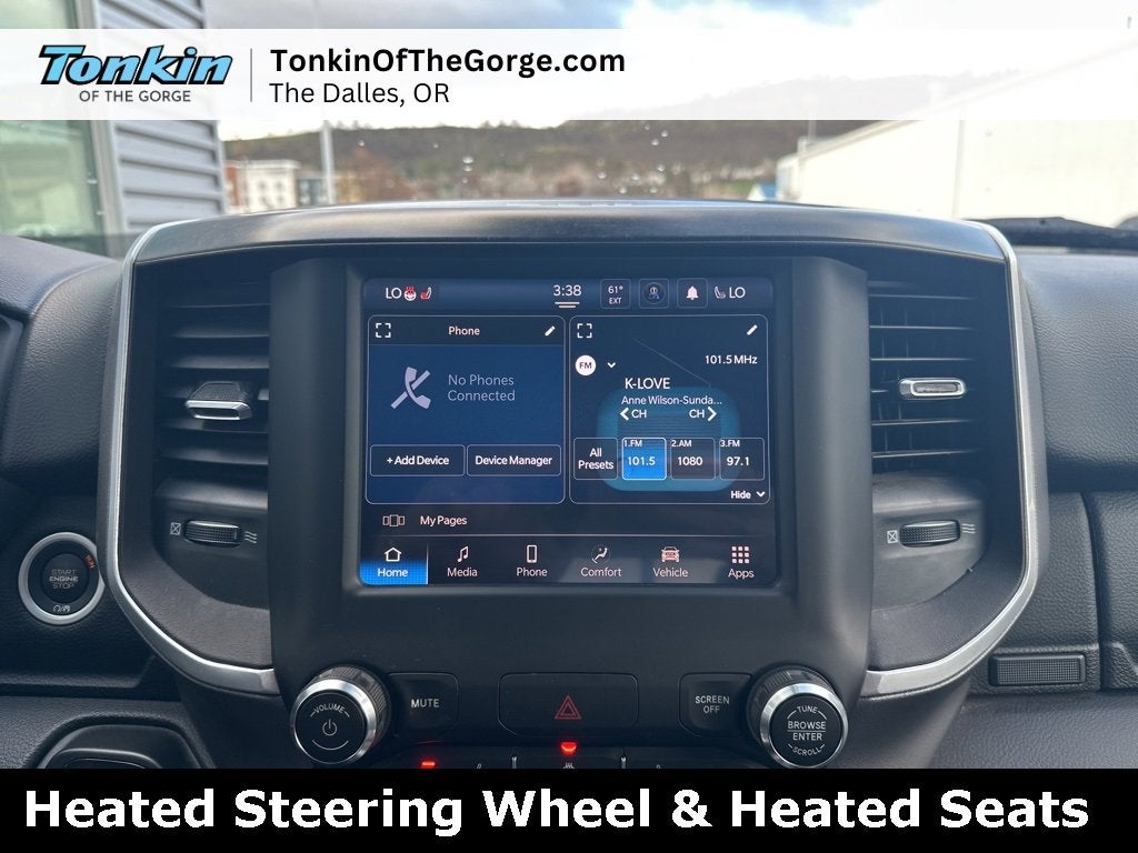 2023 Ram 1500 Big Horn/Lone Star Bright White Clearcoat ***One Owner***, ***AWD / 4WD***, ***Backup Camera***, ***Steering Wheel Controls***, Cruise Control, Power Locks, Power Windows, 1500 Big Horn/Lone Star, 4D Crew Cab, 3.6L V6 24V VVT, 8-Speed Automatic, 4WD, Bright White Clearcoat, Black Cloth, 115V Auxiliary Power Outlet, 2nd Row In Floor Storage Bins, 3 Rear Seat Head Restraints, 4 Way Front Headrests, 4-Wheel Disc Brakes, 400W Inverter, 4G LTE Wi-Fi Hot Spot, 6 Speakers, 8.4 Touchscreen Display, 9 Amplified Speakers w/Subwoofer, ABS brakes, Accent Color Door Handles, Accent Color Premium Power Mirrors, Air Conditioning, Air Conditioning ATC w/Dual Zone Control, AM/FM radio, Anti-Spin Differential Rear Axle, Apple CarPlay, Auto-Dimming Exterior Driver Mirror, Auto-Dimming Rear-View Mirror, Big Horn Badge, Big Horn Level 2 Equipment Group (DISC), Black Exterior Mirrors, Black Exterior Truck Badging, Black Headlamp Bezels, Black Interior Accents, Black Painted Exterior Mirrors Caps, Black Premium Power Mirrors, Bluetooth® Handsfree Phone & Audio, Body Color Front Bumper, Body Color Rear Bumper w/Step Pads, Brake assist, Bucket Seats, Center Console Parts Module, Class IV Receiver Hitch, Cluster 7.0 TFT Color Display, Connectivity - US/Canada, Convex Wide-Angle Exterior Mirror Insert, Deluxe Cloth Bucket Seats, Dual Exhaust w/Black Tips, Dual front impact airbags, Dual front side impact airbags, Electric Shift-On-Demand Transfer Case, Electronic Stability Control, Emergency communication system: SiriusXM Guardian, Exterior Mirrors Courtesy Lamps, Exterior Mirrors w/Heating Element, Exterior Mirrors w/Supplemental Signals, For Details, Visit DriveUconnect.com, For More Info, Call 800-643-2112, Front anti-roll bar, Front Fog Lamps, Front Seat Back Map Pockets, Front wheel independent suspension, Full Length Floor Console, Glove Box Lamp, Google Android Auto, GPS Antenna Input, Heated Front Seats, Heated Steering Wheel, Integrated Center Stack Radio, LED Footwell Lighting, Low tire pressure warning, Manual Adjust 4-Way Front Passenger Seat, Media Hub w/2 Charge Only USBs, Night Edition, Occupant sensing airbag, Overhead airbag, ParkSense Front/Rear Park Assist w/Stop, Power 2-Way Driver Lumbar Adjust, Power 8-Way Driver Seat, Power Adjustable Pedals, Power steering, Power windows, Power-Folding Mirrors, Quick Order Package 23Z Big Horn, Radio data system, Radio: Uconnect 3 w/5 Display, Radio: Uconnect 5 W w/8.4 Display, RAM Grille Badge - Black, Rear 60/40 Folding Seat, Rear anti-roll bar, Rear Center Armrest, Rear Dome w/On/Off Switch Lamp, Rear Power Sliding Window, Rear Window Defroster, Remote keyless entry, Remote Start System, Security Alarm, SiriusXM Satellite Radio, Steering wheel mounted audio controls, Sun Visors w/Illuminated Vanity Mirrors, Traction control, Universal Garage Door Opener, USB Host Flip, Wheels: 20 x 9.0 Premium Paint/Polished. Priced below KBB Fair Purchase Price! CARFAX One-Owner.